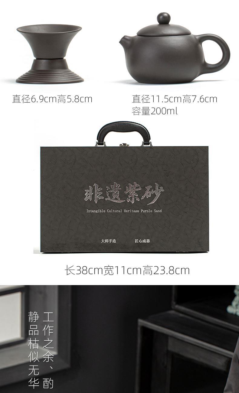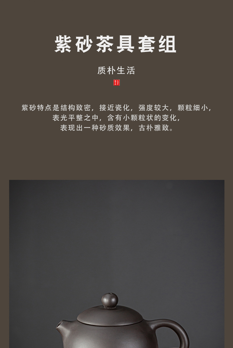 【产品配置】 茶壶*1 茶海*1 茶漏组*1 茶杯*6 礼盒*1 【产品说明】 采用天然紫砂泥料,温润有质感,兼具透气性; 壶嘴出水顺畅、断水利落; 防烫壶把拿捏舒适,底部打磨平整确保稳固; 茶漏组、茶海等配件设计简化冲泡流程,适合功夫茶仪式; 高温烧制,工艺精湛,确保茶具耐用且稳定性强。